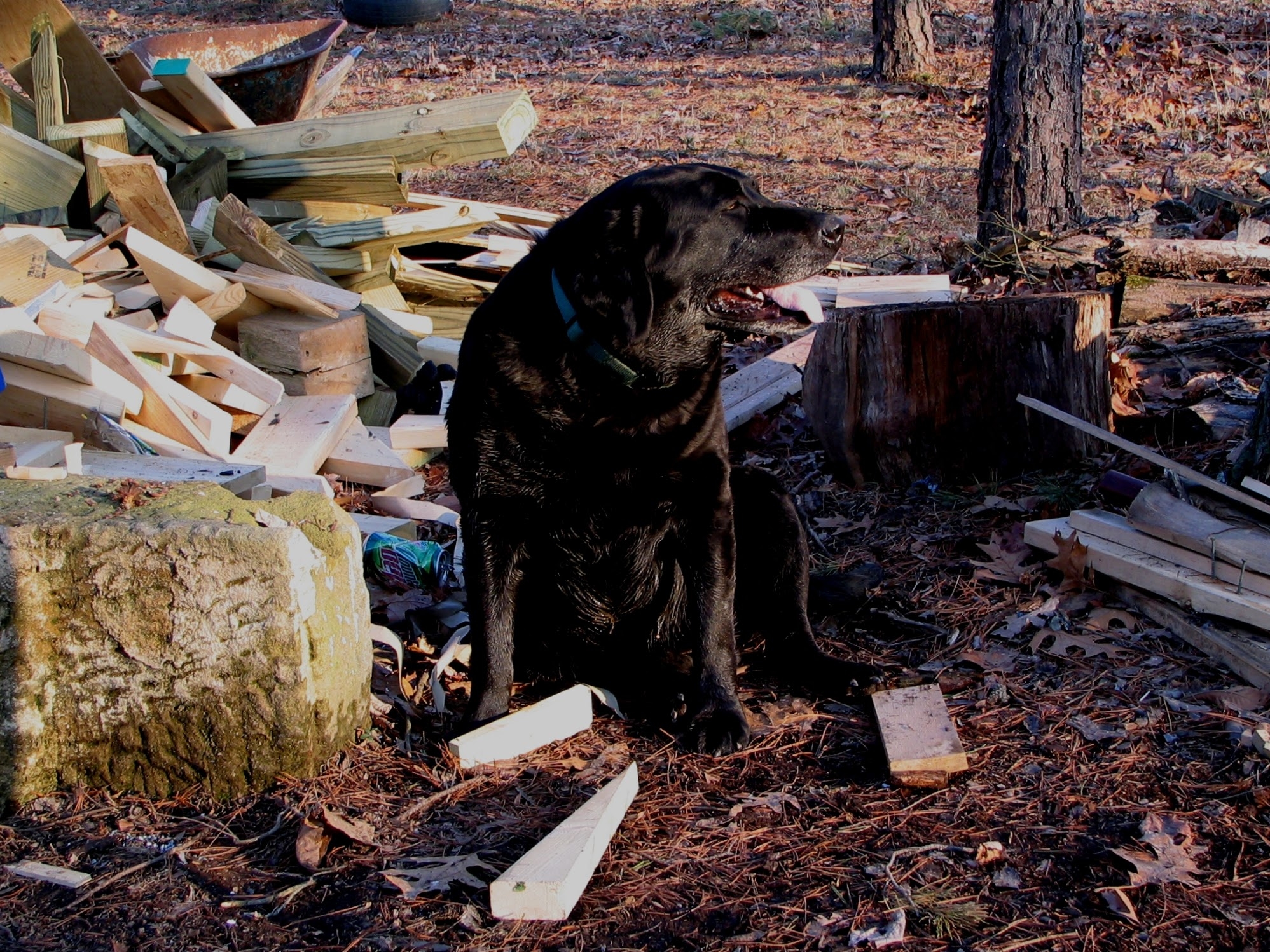 While perched on a nearby branch, I noticed Maggie, a beautiful black Labrador Retriever, sitting among cut pieces of wood and tree stumps. The setting was a serene wooded area, with sunlight filtering through the trees, casting dappled shadows on the ground. Maggie’s shiny coat glistened in the light as she looked off to the side, her gaze fixed on something just out of frame. The scene was a perfect blend of nature and companionship. The cut wood and tree stumps added a rustic charm, while the sunlight created a warm, inviting atmosphere. Maggie’s presence brought a sense of calm and contentment, a reminder of the simple joys found in nature. This image captures a moment of tranquility and connection with the natural world. The mood is peaceful and reflective, a testament to the bond between humans and their furry friends. #DogInNature #NaturePhotography #BlackLab #WoodlandScene #SunlitForest #NatureLovers #PhotographyLovers #RusticCharm #PetPhotography #NatureScenes #PhotographyArt #NatureInspiration #NatureMood Detailed Description: A black Labrador Retriever named Maggie sits among cut wood and tree stumps in a wooded area, with sunlight filtering through the trees, creating a warm and inviting scene. Image Tags: black lab calm cut wood dappled shadows dog forest Labrador Retriever Maggie nature peaceful rustic serene sunlight tree stumps wooded area